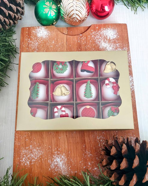 Caixa com 12 lindos e gostosos docinhos a base de leite condensado coberto com glacê (fondant).