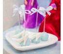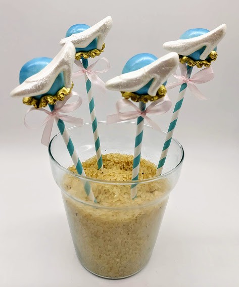 Bolo no palito (massa de baunilha/chocolate com doce de leite) coberto com chocolate e decoração em pasta americana.