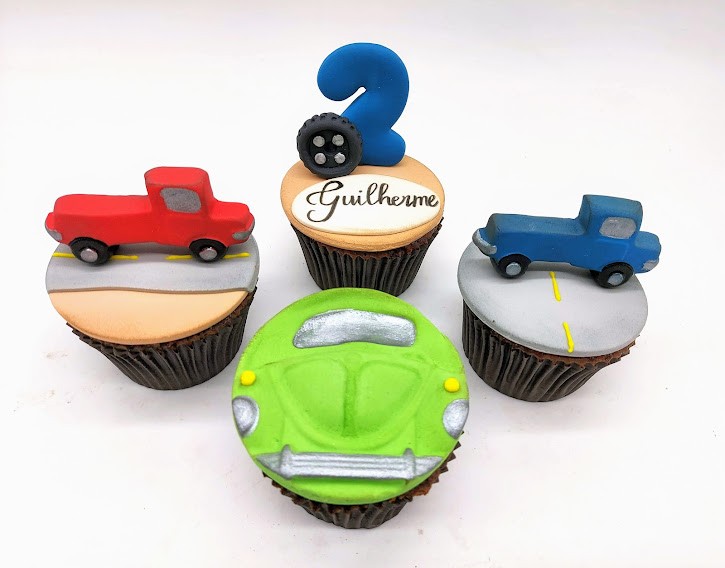 Cupcake tamanho grande tradicional com cobertura plana de pasta americana.
