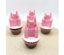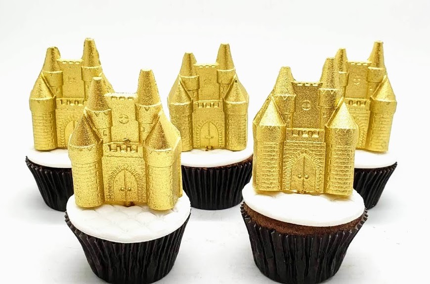 Cupcake tamanho grande com cobertura plana de pasta americana e Castelo em chocolate.