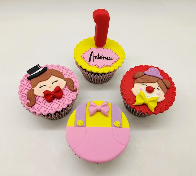 Cupcake tamanho grande tradicional com cobertura de pasta americana (valor do conjunto).