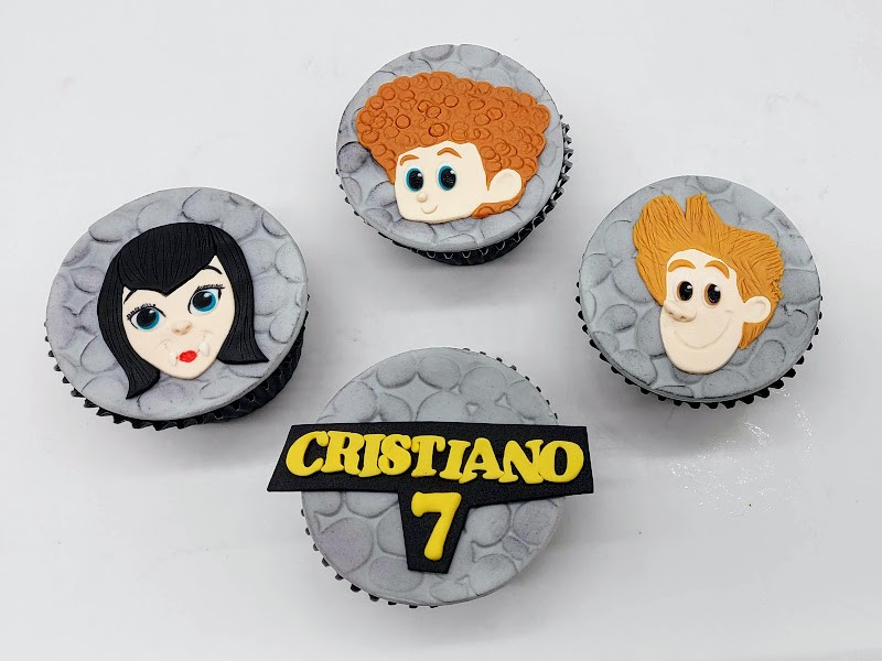 Cupcake tamanho grande tradicional com cobertura plana de pasta americana.