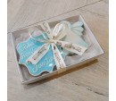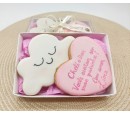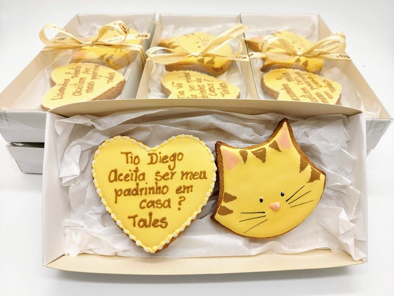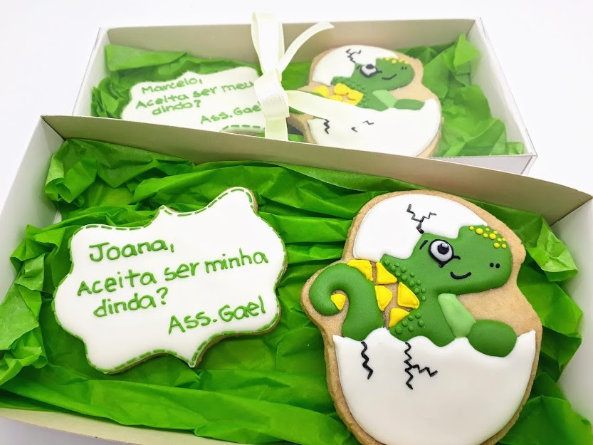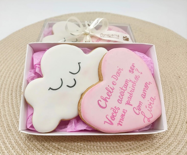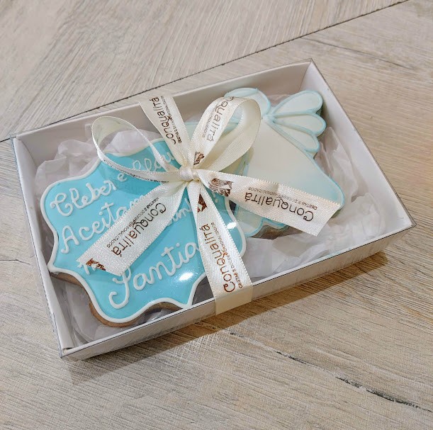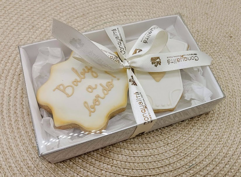 Linda caixa com biscoitos amanteigados decorados com glacê real.