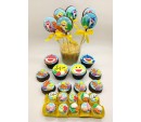- 10 Docinhos glaceados ou bombons decorados planos,