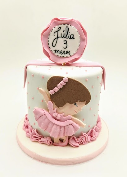 Blindagem (pré cobertura) de ganache meio amargo e cobertura e decoração em pasta americana.