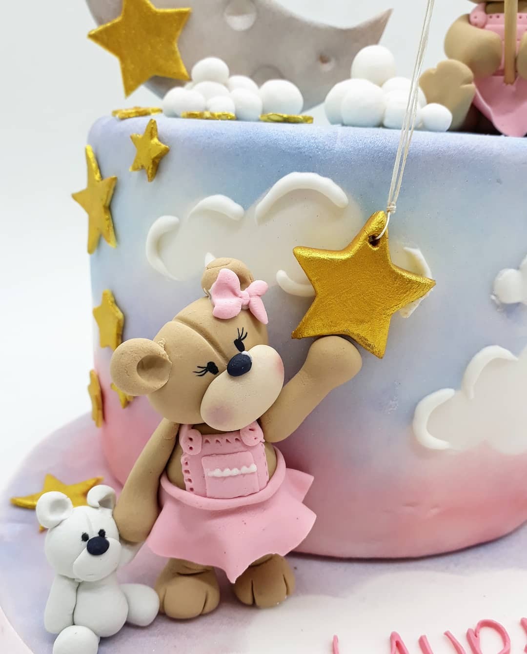 Blindagem (pré cobertura) de ganache meio amargo e cobertura e decoração em pasta americana.
