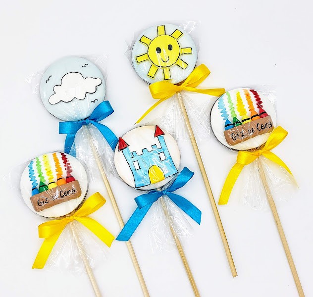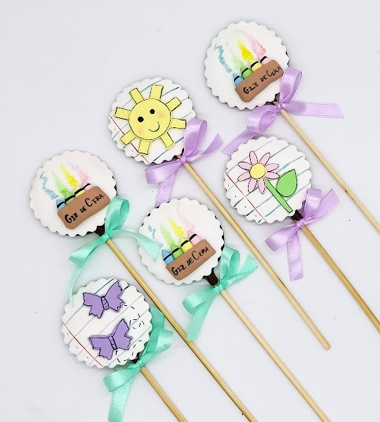 Nossos pirulitos são feitos com o delicioso chocolate nobre de Gramado com decoração em pasta americana.