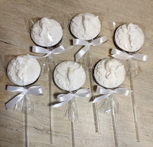 Nossos pirulitos são feitos com o delicioso chocolate nobre de Gramado com decoração em pasta americana.