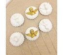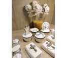 Embalados com saquinho de celofane e laço de fita de cetim.