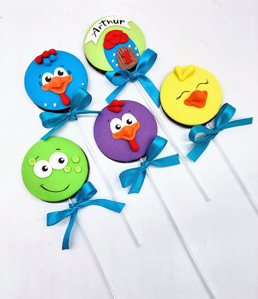 Nossos pirulitos são feitos com o delicioso chocolate nobre de Gramado com decoração em pasta americana.