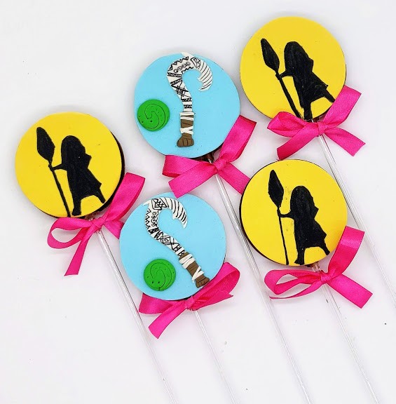 Nossos pirulitos são feitos com o delicioso chocolate nobre de Gramado com decoração em pasta americana.